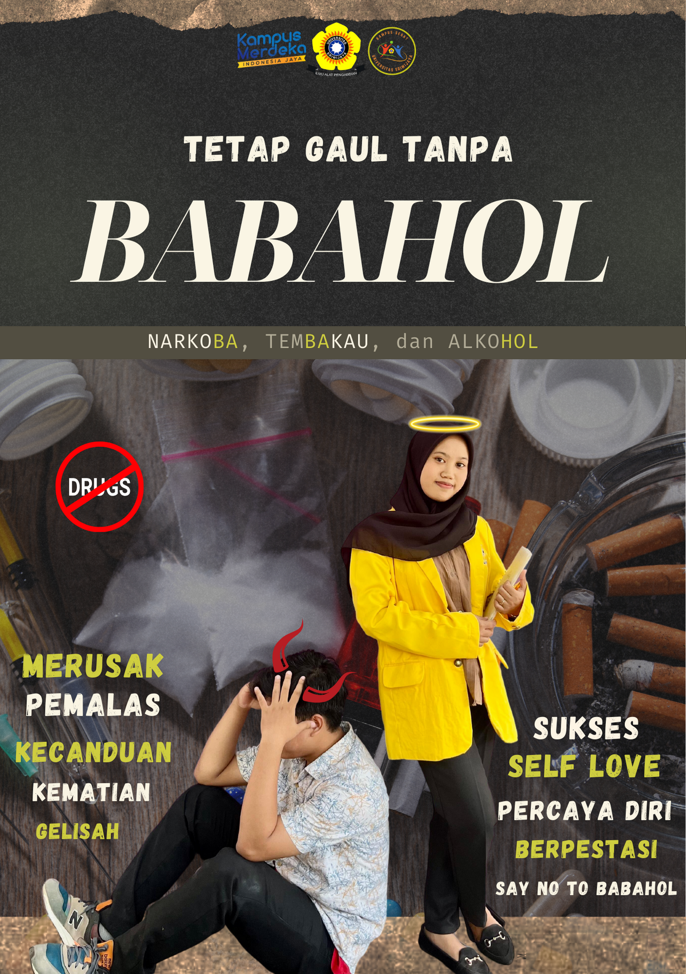 Buku saku yang berjudul “Tetap Gaul Tanpa BABAHOL” merupakan sebuah buku yang berisi mengenai jenis dan bahaya narkoba, tembakau, dan minuman alkohol pada area kampus. Di awal buku ini disajikan cerita fakta dari beberapa mahasiswa yang telah menggunakan narkoba, tembakau bahkan minuman alkohol yang terlihat bahwa pertemanan dan dunia malam menjadi faktor utama pada pengalaman tersebut. Buku ini juga berisi mengenai jenis, faktor penyebab, dan dampak yang didapatkan ketika mengonsumsi hal tersebut. Selain itu, buku ini juga menjelaskan mengenai cara penyembuhan, mencegah, dan menolak ajakan teman untuk menggunakan narkoba, tembakau, dan minuman alkohol. Dengan dibuatnya buku ini diharapkan kepada mahasiswa untuk menjauhi dan tidak untuk mencoba-coba mengonsumsi narkoba, tembakau, dan alkohol.